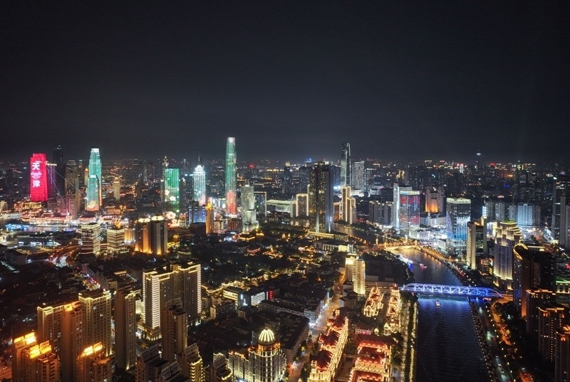 世界經(jīng)濟論壇第十六屆新領(lǐng)軍者年會(又稱“夏季達沃斯論壇”)即將在天津開幕。夜色下的天津燈光璀璨,多座地標性建筑點亮樓體燈光,流光溢彩迎接中外賓朋。