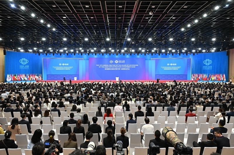 6月26日,以“互聯(lián)助力發(fā)展,合作共創(chuàng)繁榮”為主題的亞洲基礎(chǔ)設(shè)施投資銀行第十屆理事會年會開幕式在京舉行,來自近100個國家和地區(qū)的3500余名嘉賓參會。