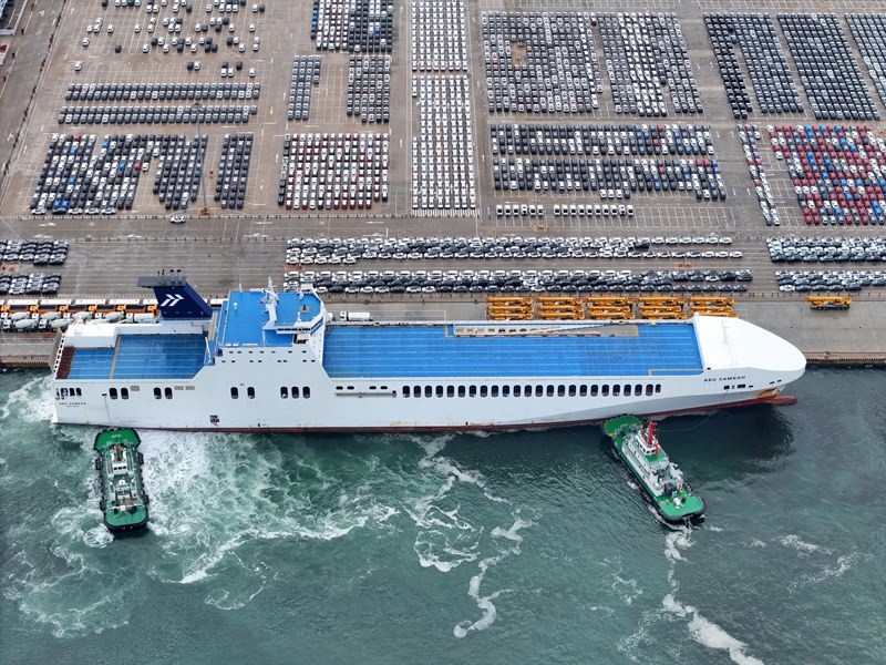 連日來,在山東港口煙臺港,大批出口車輛集結待發(fā),汽車運輸船穿梭往來,一派繁忙景象。今年1—5月,煙臺港完成商品車運量29.6萬輛。目前,煙臺港已實現全球主要商品車碼頭全覆蓋、全聯通,形成“以航線帶貨源、以貨源促航線”的良性循環(huán)。