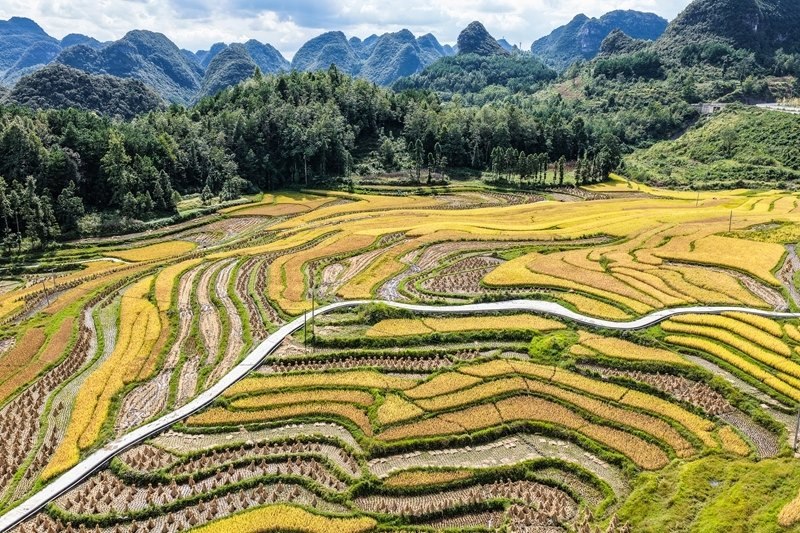 長順縣長寨街道中塘村的梯田風(fēng)光(9月17日攝,無人機(jī)照片)。