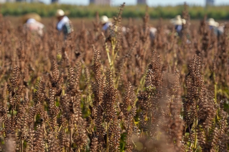 9月23日,黑龍江省佳木斯市樺南縣舉辦慶祝中國農(nóng)民豐收節(jié)活動(dòng),工作人員進(jìn)行紫蘇收獲展示。