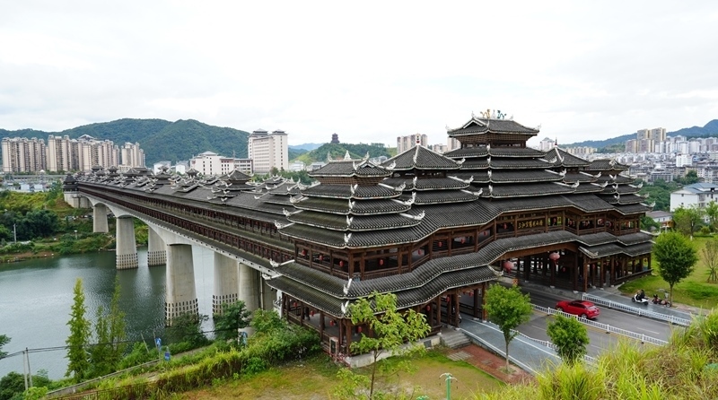 侗族風雨橋是侗族木構(gòu)建筑的代表之一。廣西柳州市三江侗族自治縣現(xiàn)有侗族風雨橋200余座,如三江宜陽風雨橋、程陽永濟橋等。