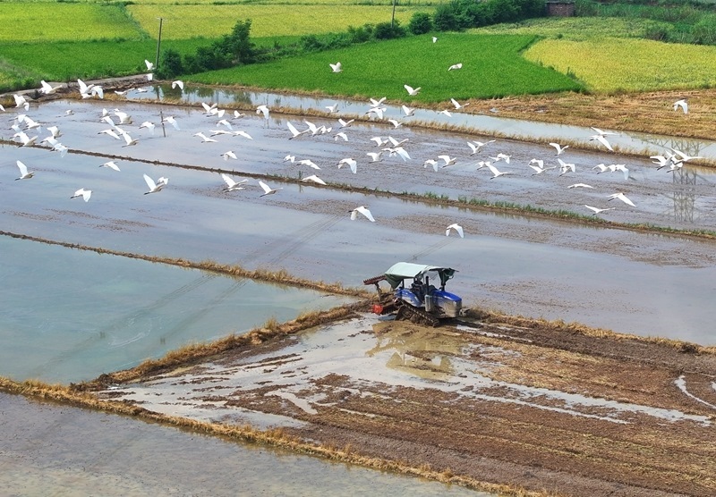 時下正值“雙搶”大忙季節(jié),湖南省衡陽市衡東縣農民搶抓農時翻耕稻田、搶插晚稻。