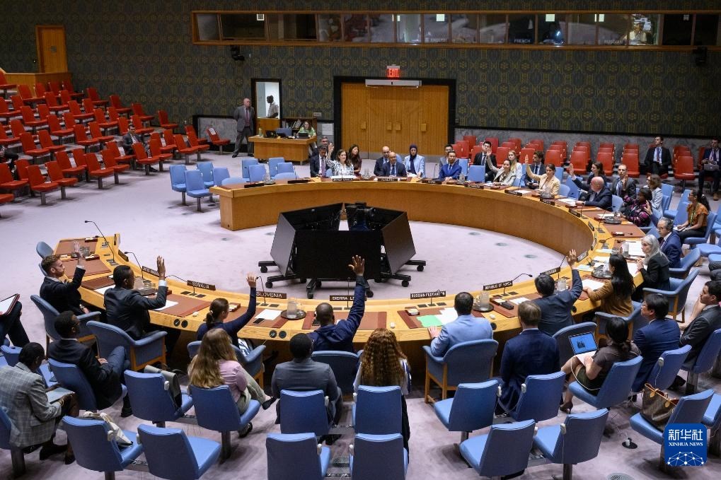 這是7月15日在位于紐約的聯(lián)合國總部拍攝的安理會投票表決現(xiàn)場。新華社發(fā)(聯(lián)合國供圖/洛伊·費(fèi)利佩攝)