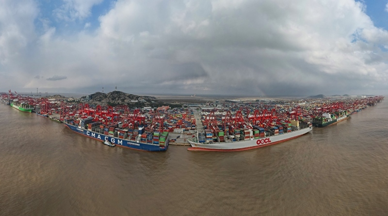 2024年12月18日拍攝的洋山港集裝箱碼頭(無人機(jī)全景照片)。新華社記者 方喆 攝