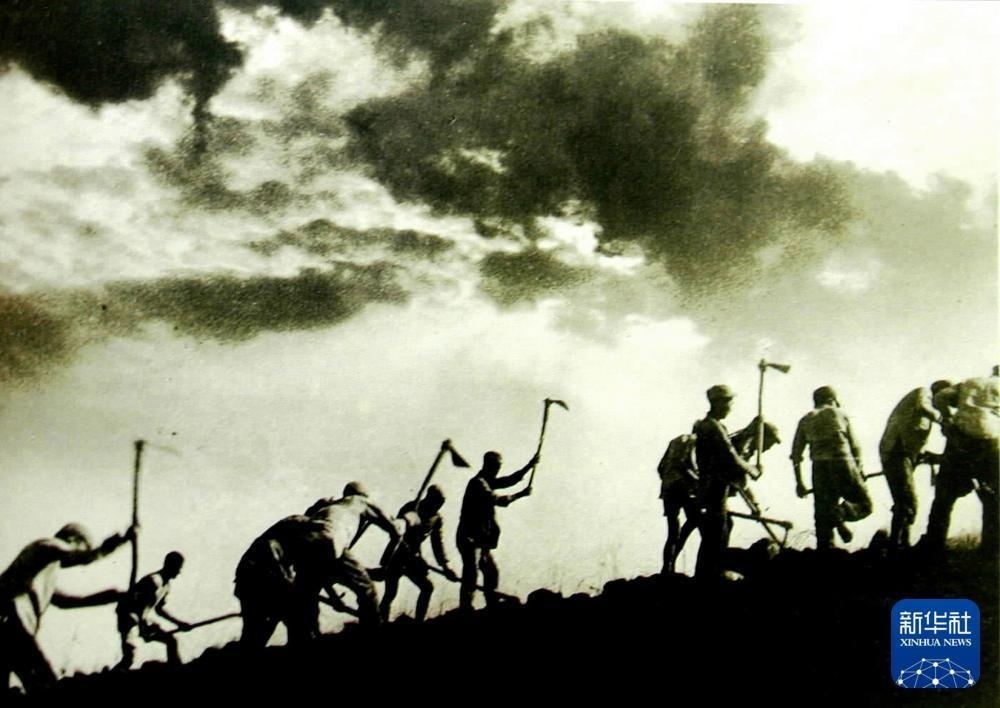 八路軍戰(zhàn)士在南泥灣開荒生產(chǎn)。新華社發(fā)