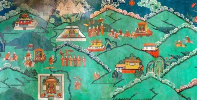 這幅布達(dá)拉宮壁畫(huà)講述了公元7世紀(jì),吐蕃贊普松贊干布統(tǒng)一青藏高原,迎娶唐文成公主,“漢藏一家親”的傳世佳話(資料照片)。新華社發(fā)