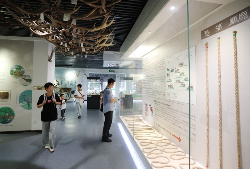 8月24日,游客在北京南海子麋鹿苑博物館參觀了解麋鹿相關(guān)知識。