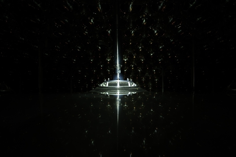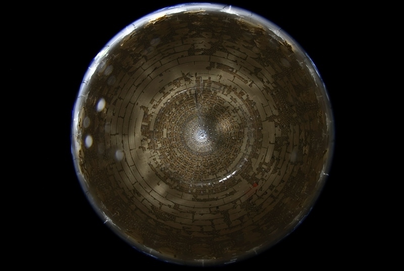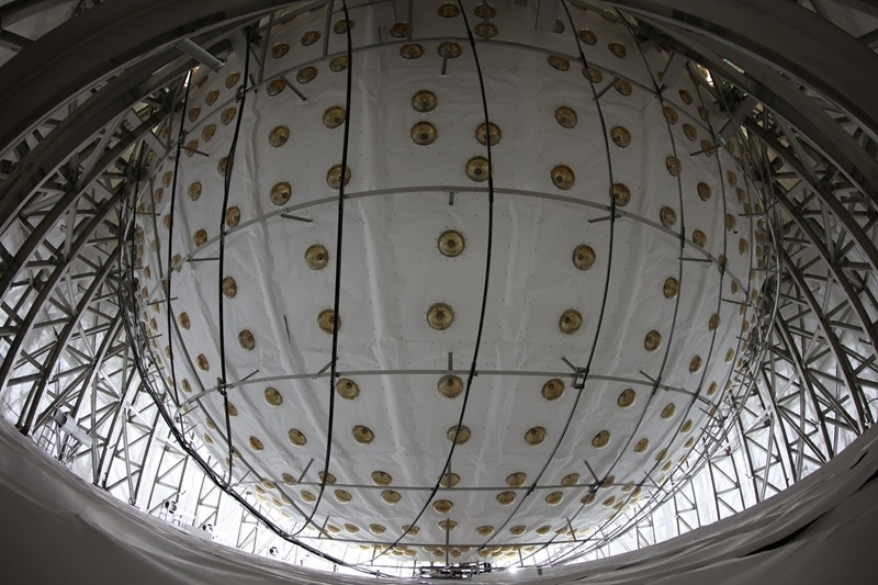 從江門中微子實驗球底拍攝的中心探測器有機玻璃球(2024年11月22日攝)。