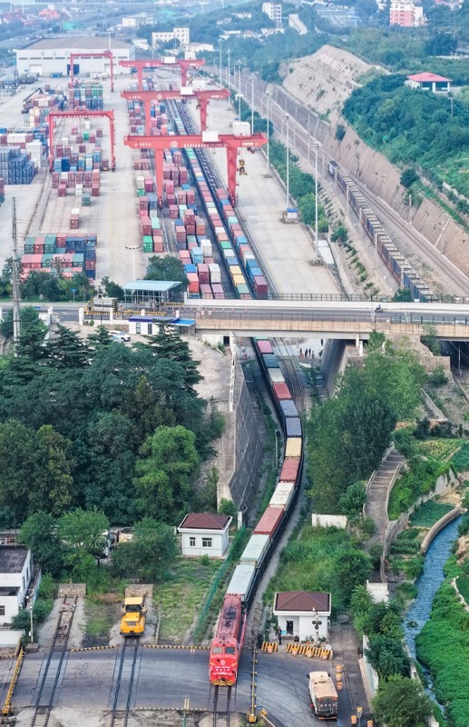 8月29日,在位于江蘇連云港市的中哈(連云港)物流合作基地,滿載50個(gè)集裝箱的光伏專列發(fā)車,這是中哈(連云港)物流合作基地開(kāi)行的首列光伏專列。該趟列車抵達(dá)喀什北站后,貨物再通過(guò)汽車運(yùn)抵烏茲別克斯坦,與傳統(tǒng)的全鐵路運(yùn)輸相比,這種鐵公聯(lián)運(yùn)方式可有效縮短運(yùn)輸距離,并發(fā)揮鐵路運(yùn)輸?shù)拈L(zhǎng)距離、大運(yùn)量和公路運(yùn)輸?shù)撵`活性特點(diǎn)。