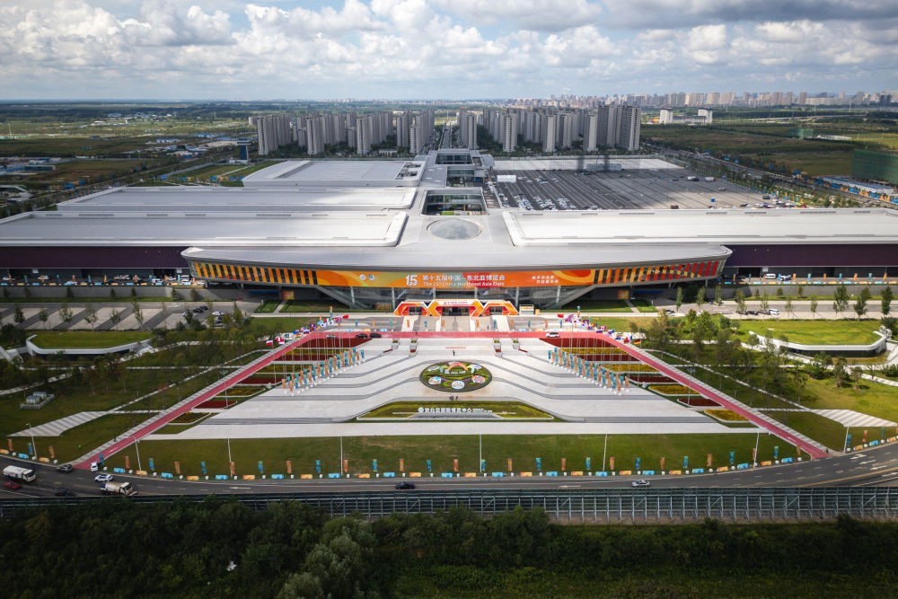 這是2025年8月26日拍攝的第十五屆中國(guó)—東北亞博覽會(huì)展館外景(無(wú)人機(jī)照片)。新華社記者 許暢 攝