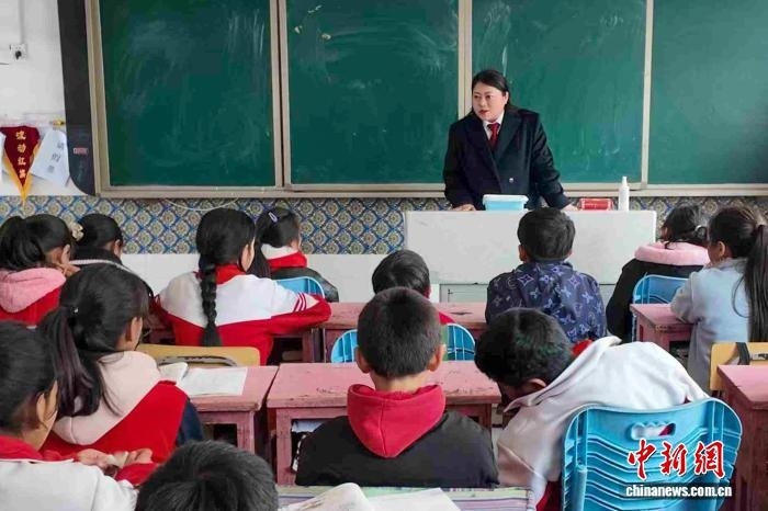 圖為2025年4月,全國(guó)政協(xié)委員、西藏墨脫縣人民法院綜合審判庭庭長(zhǎng)白瑪玉珍在墨脫縣格當(dāng)鄉(xiāng)小學(xué)為孩子們上法治課。(受訪(fǎng)者供圖)