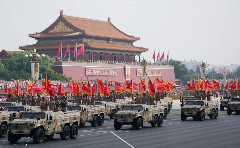 9月3日,紀(jì)念中國人民抗日戰(zhàn)爭暨世界反法西斯戰(zhàn)爭勝利80周年大會在北京隆重舉行。這是信息支援方隊接受檢閱。