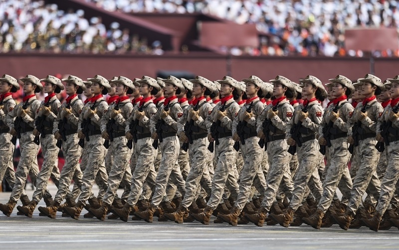 9月3日,紀(jì)念中國人民抗日戰(zhàn)爭暨世界反法西斯戰(zhàn)爭勝利80周年大會在北京隆重舉行。這是網(wǎng)絡(luò)空間作戰(zhàn)方隊接受檢閱。