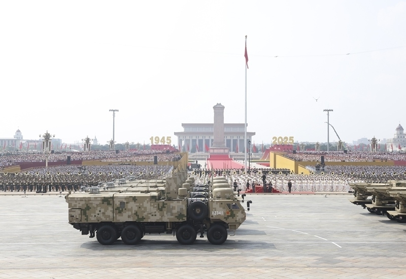9月3日,紀(jì)念中國人民抗日戰(zhàn)爭暨世界反法西斯戰(zhàn)爭勝利80周年大會在北京隆重舉行。這是高超聲速導(dǎo)彈方隊接受檢閱。