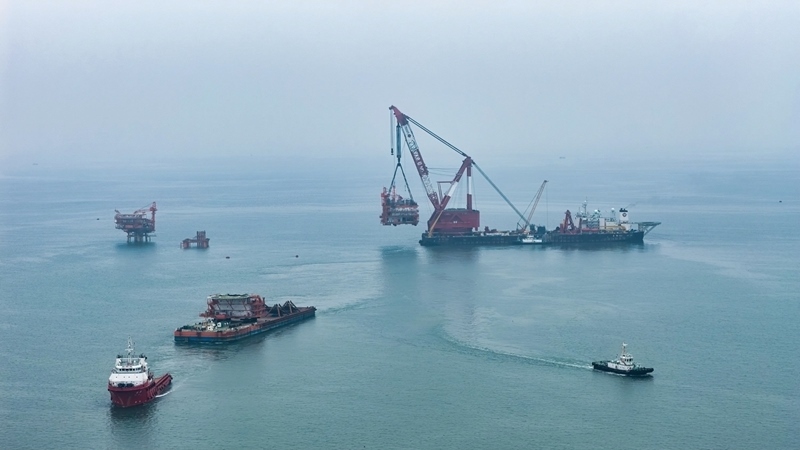 9月8日,隨著重達(dá)4700噸的油氣平臺上部組塊在渤海南部海域精準(zhǔn)就位,墾利6-1油田10-1北區(qū)塊Ⅱ期開發(fā)項目建設(shè)工作取得重要進(jìn)展,渤海億噸級油田又一油氣平臺完成海上安裝。