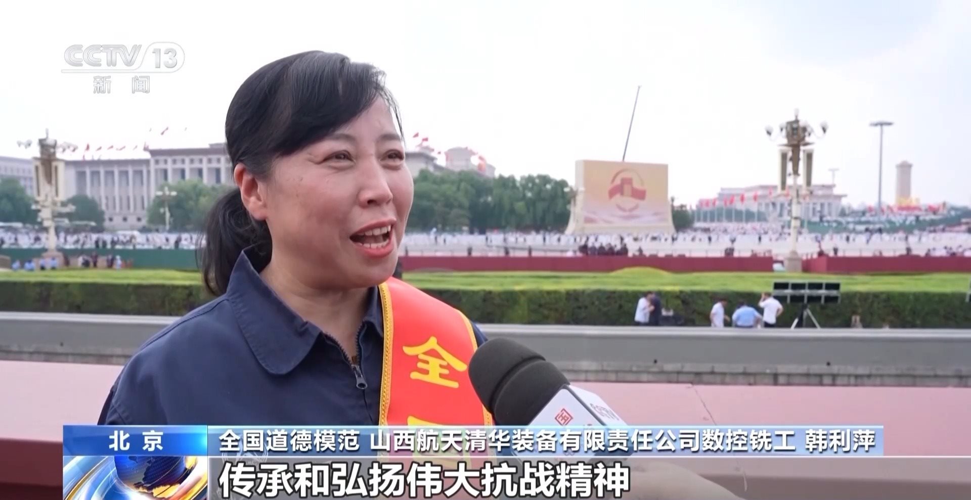 全國(guó)道德模范、山西航天清華裝備有限責(zé)任公司數(shù)控銑工 韓利萍:傳承和弘揚(yáng)偉大抗戰(zhàn)精神,這句話(huà)對(duì)我的觸動(dòng)非常深。我要把忠誠(chéng)愛(ài)國(guó)、精益求精、堅(jiān)韌不拔的精神融入日常工作中,把每一個(gè)產(chǎn)品都加工成精品,為航天強(qiáng)國(guó)貢獻(xiàn)力量