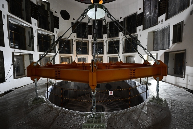 這是10月1日在緊湊型聚變能實驗裝置(BEST)建設(shè)現(xiàn)場拍攝的成功落位安裝的杜瓦底座。