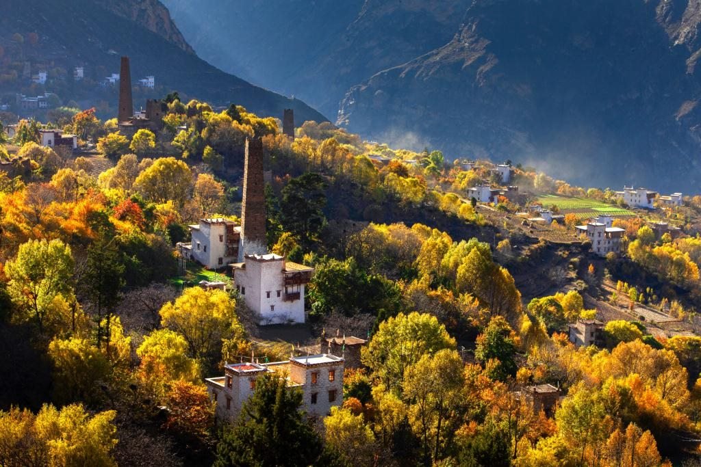 基卡依村地處藏羌彝文化走廊核心地區(qū),位于嘉絨文化、康巴文化生態(tài)保護(hù)實驗區(qū)范圍內(nèi)。保存完好的22座古碉樓與藏式民居,凝結(jié)多民族智慧,成就“云端藏寨”。
