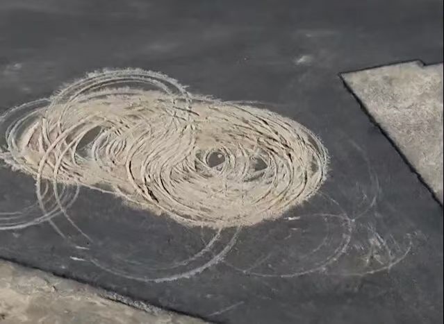 然而,近段時(shí)間以來,一些人穿越戈壁荒漠,來到這里玩漂移,留下了一個(gè)個(gè)刺眼的痕跡。尤其是在“人民”二字中間,漂移痕跡尤為嚴(yán)重,從空中俯瞰令人痛心。許多網(wǎng)友直言,這不僅是對(duì)戈壁景觀的破壞,更是對(duì)歷史和先輩的褻瀆。