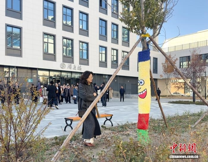 10月23日,吉林長春,大學(xué)生給樹穿上棉衣。 郭佳 攝