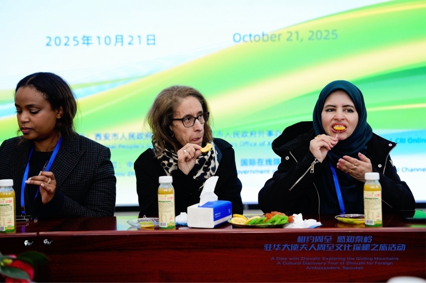 駐華大使夫人品嘗著不同品種的獼猴桃以及各式各樣的獼猴桃深加工食品,紛紛稱贊其細膩的口感、獨特的風味和濃郁的果香?!斑@不僅是一次味覺的享受,更是一次對中國鄉(xiāng)村產(chǎn)業(yè)振興的直觀感受。”摩洛哥駐華大使夫人表示,“我非常期待后續(xù)可以和周至合作,因為摩洛哥很喜歡這種水果,我也希望可以在這里學到一些產(chǎn)業(yè)發(fā)展的知識,并把這些知識帶回我們國家?!?/p>