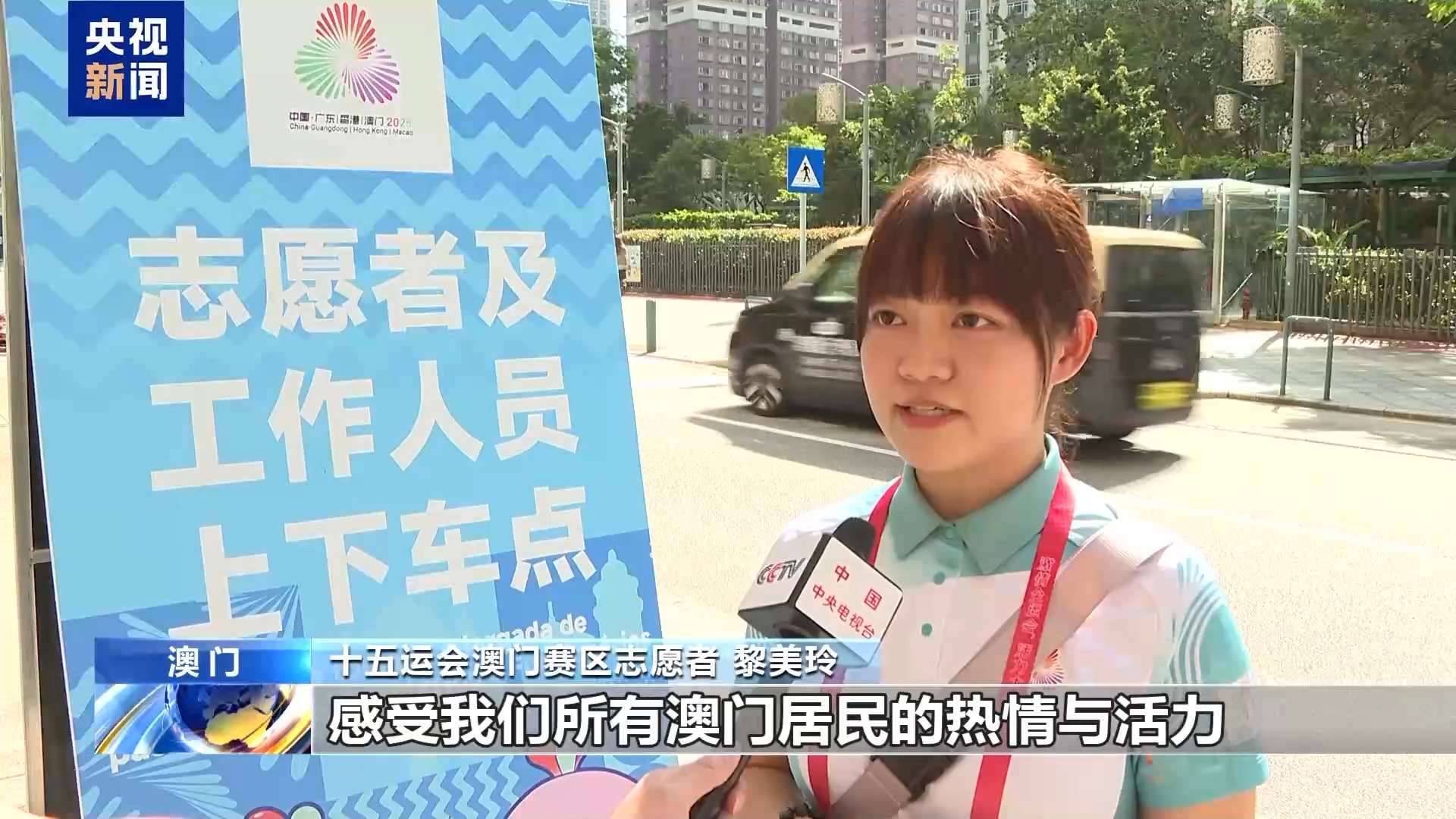 十五運會澳門賽區(qū)志愿者 黎美玲:我本身是一名小學(xué)老師,這次很開心以志愿者的身份參與在家門口舉辦的全運會賽事的服務(wù)工作。我們已經(jīng)都準(zhǔn)備好了,歡迎各地的朋友來到澳門,感受激情全運會和活力大灣區(qū),感受我們所有澳門居民的熱情與活力。