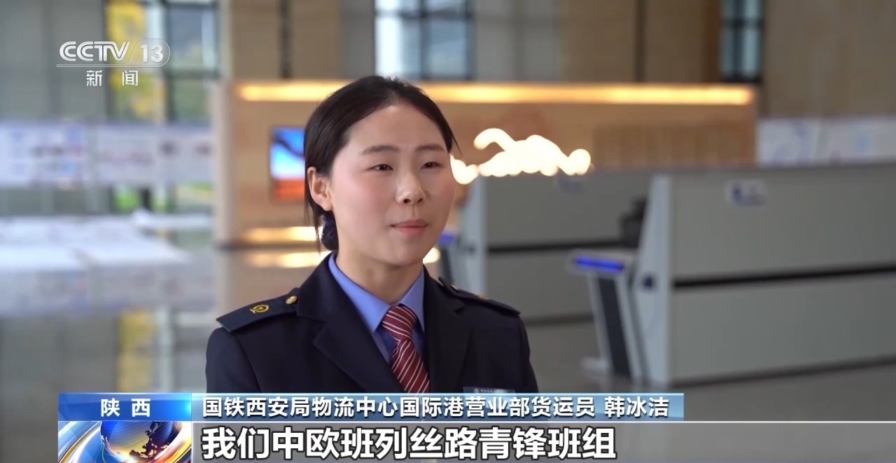 國鐵西安局物流中心國際港營業(yè)部貨運員 韓冰潔:下一個五年,我們中歐班列絲路青鋒班組要把更多中國制造更好更快發(fā)到全球。