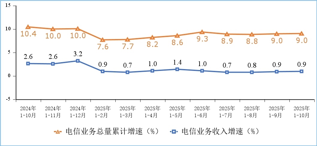 據(jù)工業(yè)和信息化部網(wǎng)站消息,工信部發(fā)布2025年前10個(gè)月通信業(yè)經(jīng)濟(jì)運(yùn)行情況。