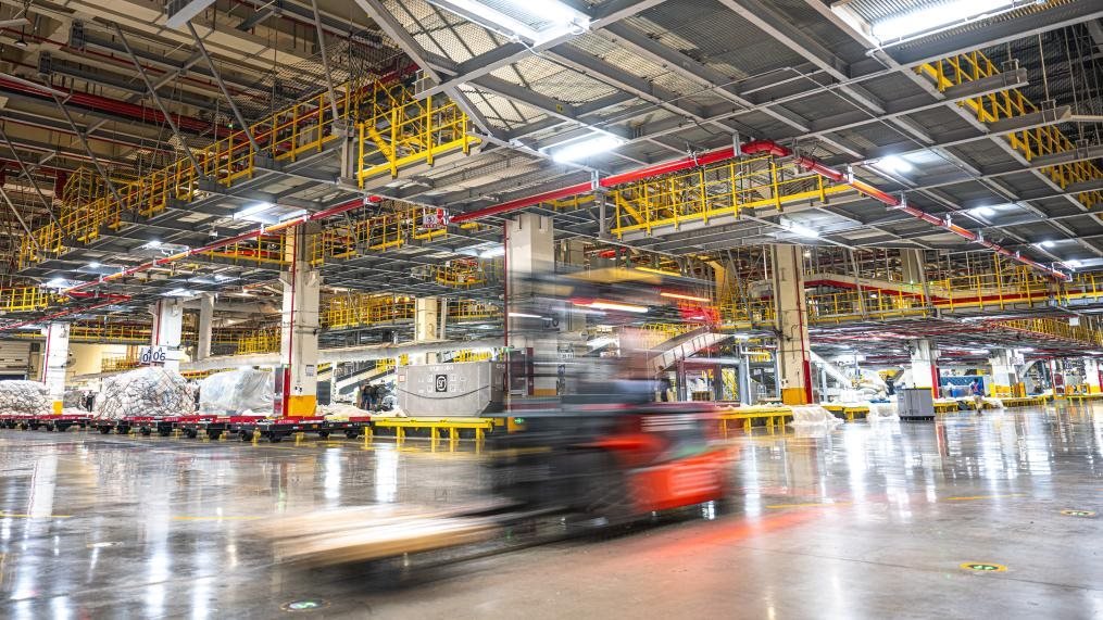 跟隨轉(zhuǎn)運(yùn)車,記者來到了建筑面積達(dá)75萬平方米的機(jī)場“工”字形轉(zhuǎn)運(yùn)中心。這里,“快點(diǎn)、快點(diǎn)”的催促聲與機(jī)器有節(jié)律的運(yùn)行聲形成交響,在2萬多臺(tái)自動(dòng)分揀設(shè)備和50多公里長傳送帶的支持下,工人們熟練地將數(shù)量規(guī)格不一的包裹抱起、分類、組合、打包,再拼裝出多個(gè)符合航空貨運(yùn)規(guī)格和形狀要求的大包裹。
