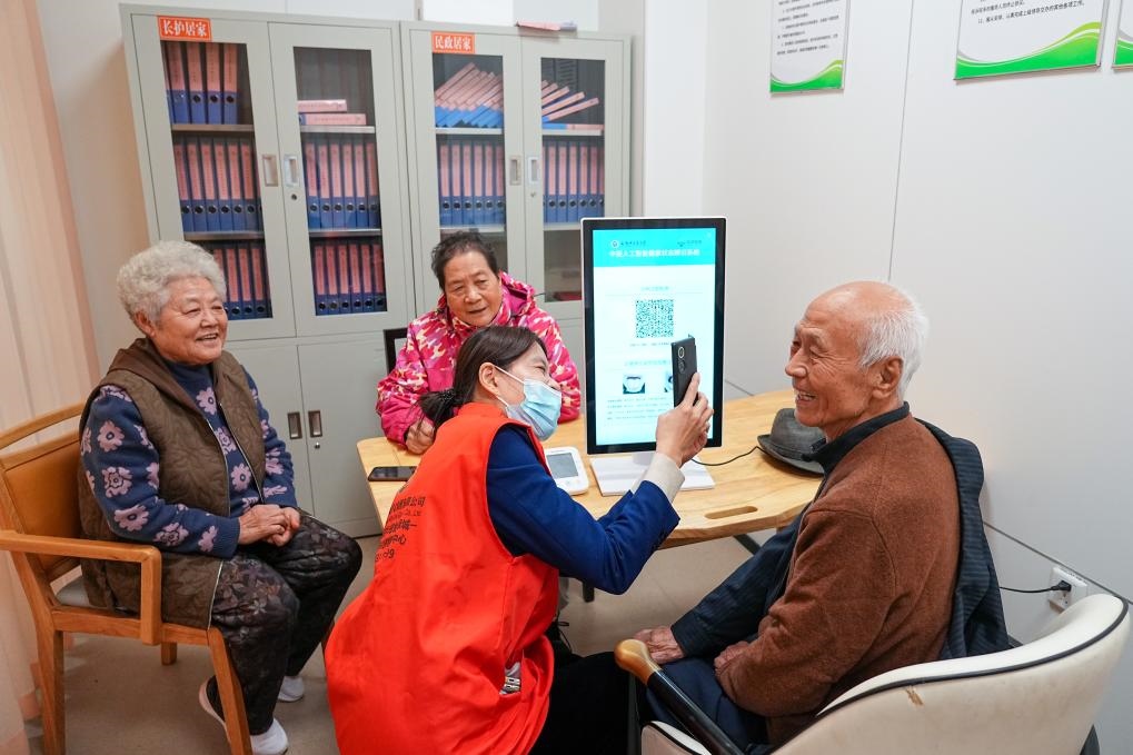 2025年10月,老人們在山東省淄博市張店區(qū)一社區(qū)日間護(hù)理中心測量健康數(shù)據(jù)。新華社記者 朱崢 攝