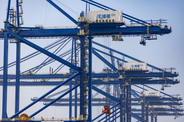 在海南島西北端的洋浦港,高大的岸橋整齊排列,正繁忙吊運(yùn)運(yùn)往來貨輪上的集裝箱,展現(xiàn)出一幅“陸海聯(lián)動”的生動圖景。