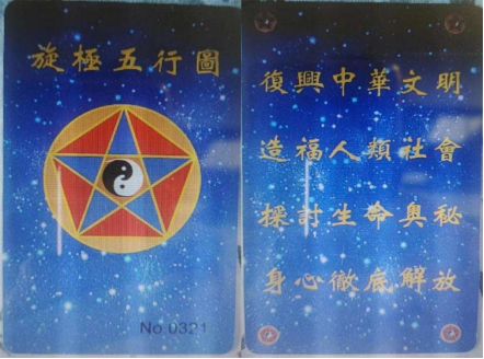 ▲“乾源文化”非法組織銷售的“旋極五行”圖卡,聲稱此卡“具有宇宙能量”,可以幫助學員提升自我