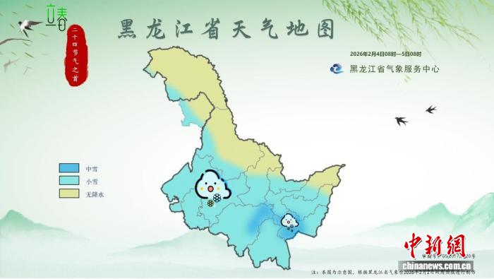 2026年“立春首日”黑龍江省天氣地圖(2026年2月4日8時(shí)至5日8時(shí))。 黑龍江省氣象局供圖