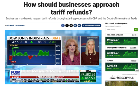 △福克斯商業(yè)臺等媒體已經(jīng)在普遍報道,企業(yè)應該如何追索退稅