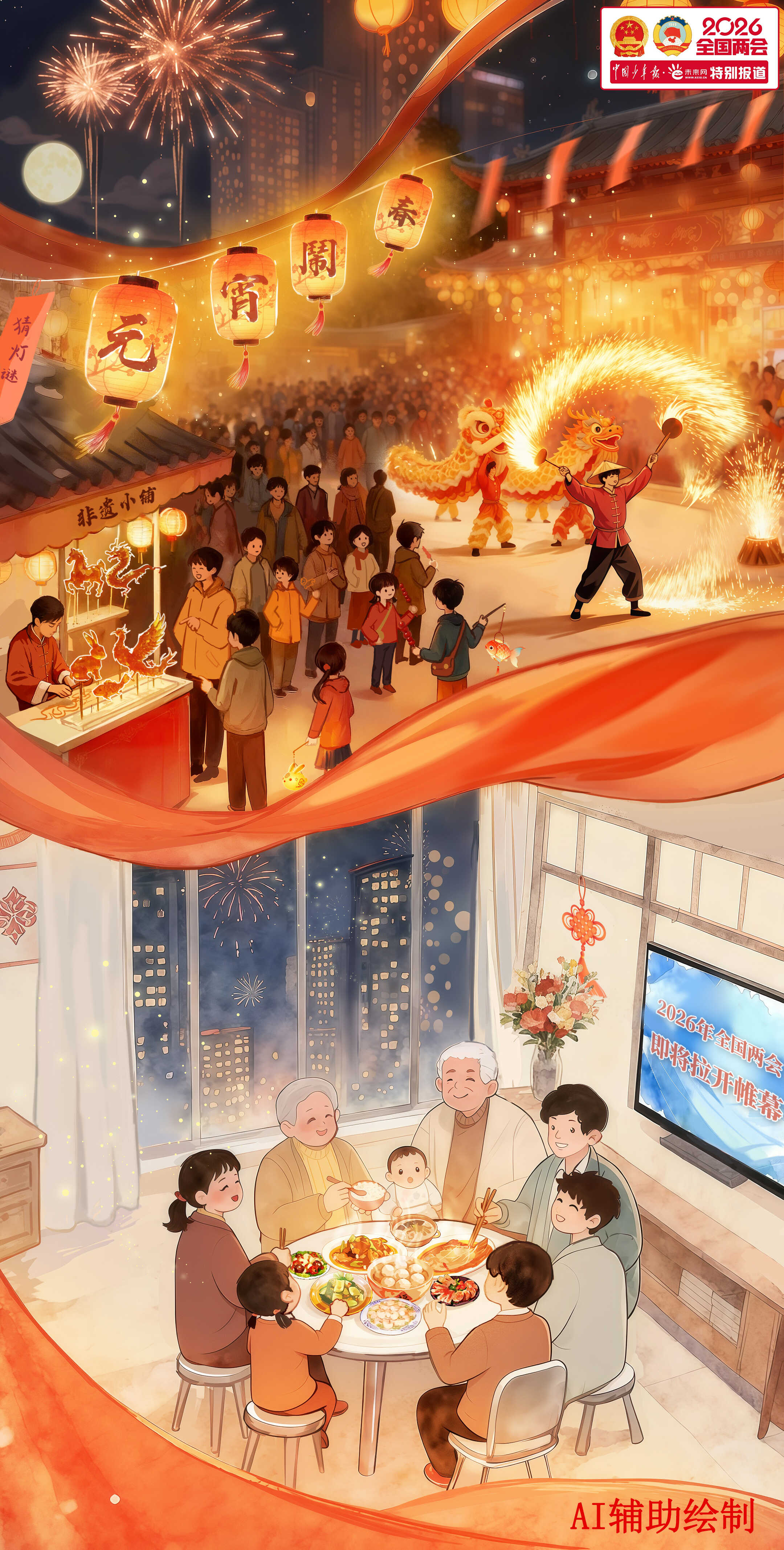 當(dāng)一盞盞花燈點(diǎn)亮城市街巷,當(dāng)一碗碗湯圓、元宵端上萬(wàn)家餐桌,2026年元宵佳節(jié)如約而至。燈火璀璨處,有孩童提燈嬉鬧的歡聲笑語(yǔ),有長(zhǎng)輩圍爐話家常的其樂融融,更有無數(shù)奮斗者收拾行囊、即將奔赴遠(yuǎn)方的身影。而在北京,一場(chǎng)備受關(guān)注與期待的春日盛會(huì)——全國(guó)兩會(huì),也將在明天(3月4日)拉開帷幕。