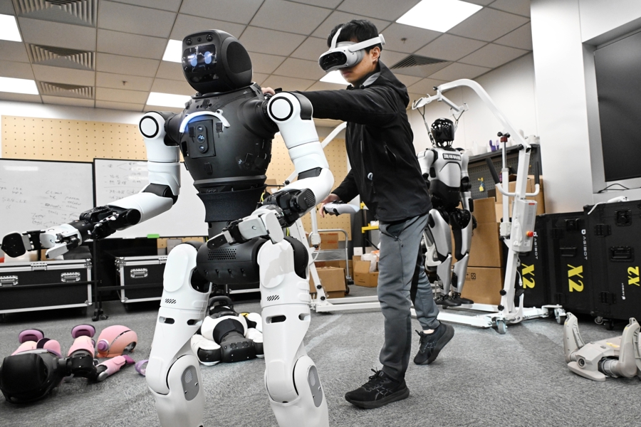 圖為由上海交通大學、上海人工智能研究院孵化的具身智能創(chuàng)業(yè)企業(yè),在豫園燈會中心廣場精心打造了一個未來感十足的智能互動區(qū)。文匯報記者袁婧攝