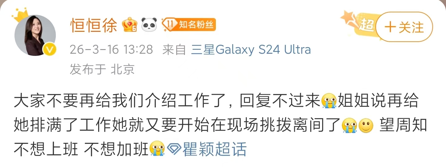 翻紅后,她不僅婉拒了大量媒體采訪,也沒有第一時(shí)間出現(xiàn)在直播間“321上鏈接”。相反,她的經(jīng)紀(jì)人更在社交媒體公開喊話,“大家不要再給我們介紹工作了……望周知,不想上班,不想加班?!?/p>