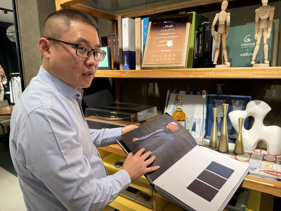 作為上海本土品牌,于建軍對自家的工藝十分自信:“我們的打版師就是從杰尼亞引入的高端人才,客人可以自由選擇杰尼亞、皮亞琴察、切瑞蒂1881等高端面料,定制價格從5000元到10萬元不等,定制周期在25個工作日左右?!彼嘎?,前段時間一位卡塔爾王室成員來滬,一口氣定制了3件襯衫、一套西服,他上門去量體裁衣,去年12月完成定制后由翻譯官帶回卡塔爾,對方反饋“超級滿意”,表示還會來上海定制。