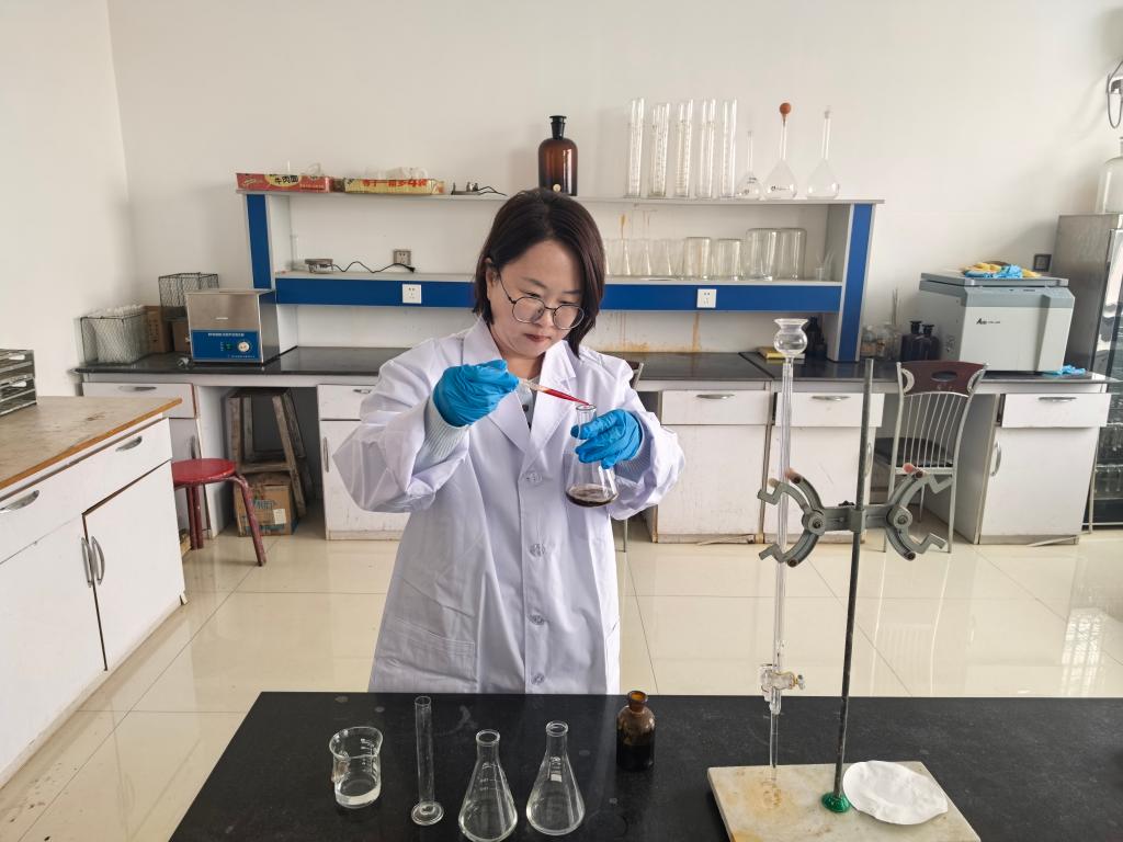 內(nèi)蒙古興安農(nóng)墾集團有限責任公司測土配方辦公室技術(shù)人員正在進行化驗。(王萍 攝)