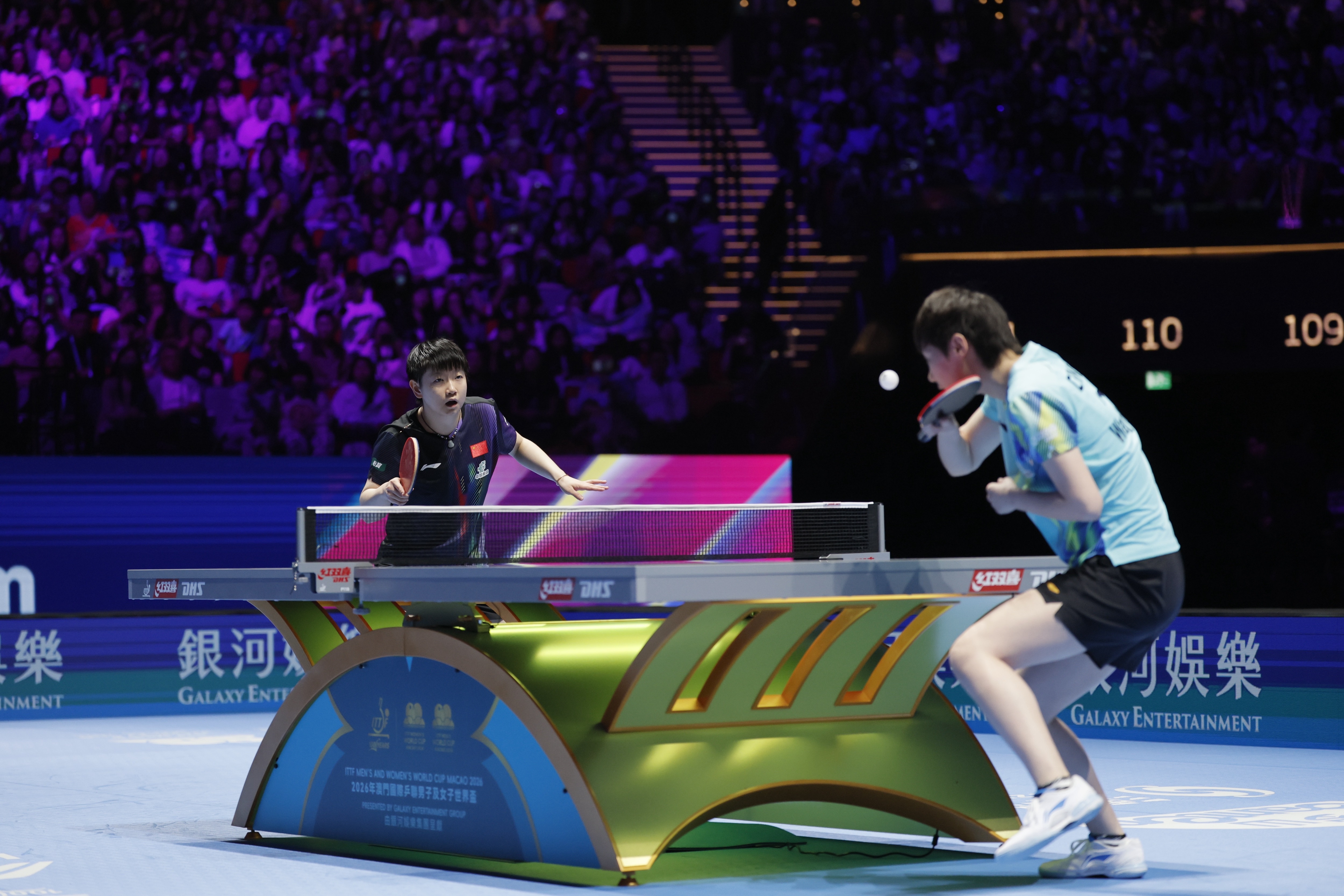 北京時間4月5日晚,國際乒聯(lián)單打世界杯女單決賽,孫穎莎4-1戰(zhàn)勝王曼昱,衛(wèi)冕冠軍,實現(xiàn)該項賽事“三連冠”。(總臺記者 劉冰清)