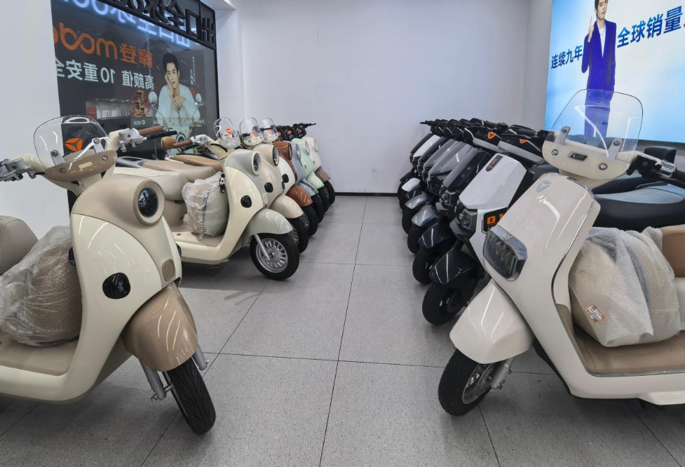 4月9日,福建省福州市平潭縣雅迪電動車旗艦店展出的電摩車型。新華網 王巖 攝
