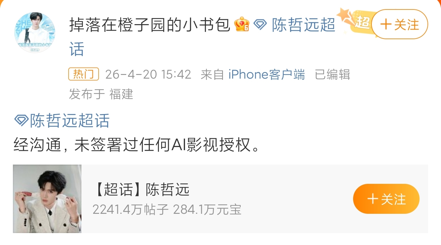 先有張若昀、陳哲遠(yuǎn)、于和偉、王楚然等明星方面紛紛發(fā)文否認(rèn),強(qiáng)調(diào)“未簽過任何AI相關(guān)授權(quán)”。后有網(wǎng)友強(qiáng)烈抵制,“所以演員休息了,給觀眾看AI?”“我為什么要開會員看假人?”
