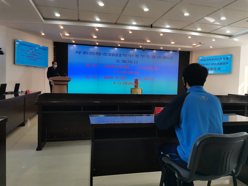 李艷紅)3月25日,呼和浩特市2022年中考學(xué)生體質(zhì)測試選測項目抽簽儀式在呼和浩特市教育招生考試中心舉行。