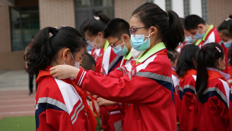 新城區(qū)北垣小學(xué)舉行一年級(jí)新生分批入隊(duì)儀式。新隊(duì)員們戴上紅領(lǐng)巾,走在陽(yáng)光下,熠熠生輝。學(xué)校利用好“六一”這個(gè)重要時(shí)間節(jié)點(diǎn),開(kāi)展入隊(duì)儀式、“紅領(lǐng)巾獎(jiǎng)?wù)隆鳖C章儀式等,用好儀式教育,構(gòu)建階梯式成長(zhǎng)激勵(lì)體系,不斷增強(qiáng)少先隊(duì)員的光榮感。