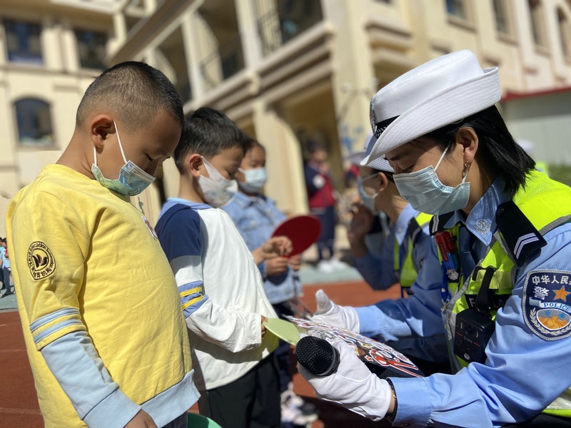 為進(jìn)一步向轄區(qū)內(nèi)小學(xué)生普及交通安全知識(shí),呼和浩特市公安局交通管理支隊(duì)賽罕大隊(duì)女警護(hù)學(xué)中隊(duì)民輔警走進(jìn)校園,開(kāi)展“交通安全小課堂”的安全教育活動(dòng),通過(guò)PPT講解、播放交通事故案例、互動(dòng)問(wèn)答、戶外游戲等多種形式,為小朋友們送去了一份交通安全知識(shí)的”六一“禮物。