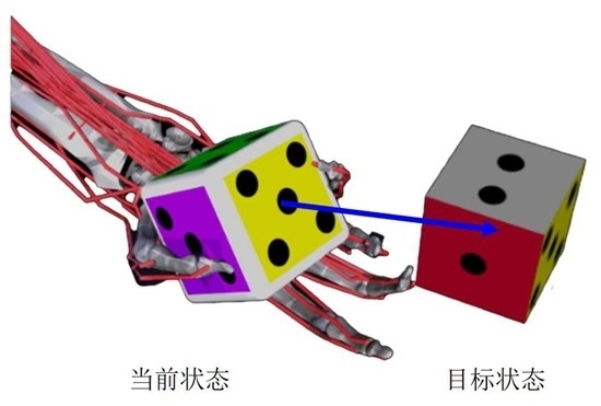 花了大約一周時(shí)間熟悉仿生靈巧手的關(guān)節(jié)與肌肉之間的關(guān)系后,他們開始制訂培訓(xùn)這位人工智能“學(xué)生”的方案。抓取、轉(zhuǎn)動骰子,對仿生手來說相當(dāng)復(fù)雜,他們就將動作拆解,如同體操教練教學(xué)員完成一套復(fù)雜的轉(zhuǎn)體、曲體組合動作時(shí),先教各個(gè)分解動作,再進(jìn)一步完成動作組合。如同水族館表演的海豚,通過獎勵塑造,人工智能在完成目標(biāo)動作時(shí),一個(gè)相當(dāng)于小魚的獎勵函數(shù)會對它進(jìn)行“激勵”,以促進(jìn)其更好地“學(xué)習(xí)”。