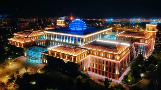 夜晚燈光亮起,閃耀的穹頂輪廓映在黑暗中,最上方的星空熠熠生輝,在館藏約為227萬冊圖書館仰止樓,遨游書海思緒翩飛,如游宇宙繁星,廣闊無垠。
