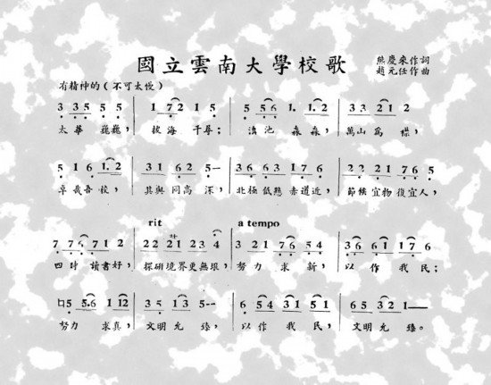 圖熊慶來作詞、趙元任作曲的國立云南大學(xué)校歌。云南大學(xué)供圖