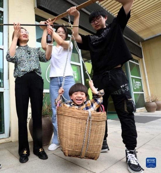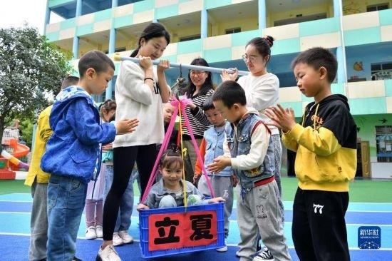 5月5日,河南省濟源市第一幼兒園的孩子體驗立夏習俗。